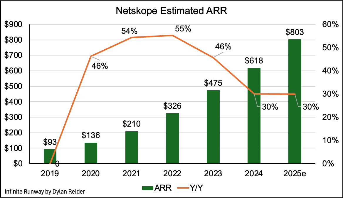 If we assume ARR growth continues at ~30% Y/Y, Netskope would achieve $803M.